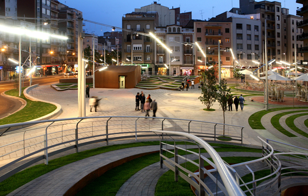 It is called "L'ametlla com balla". It is situated in the square of l' Escorxador.